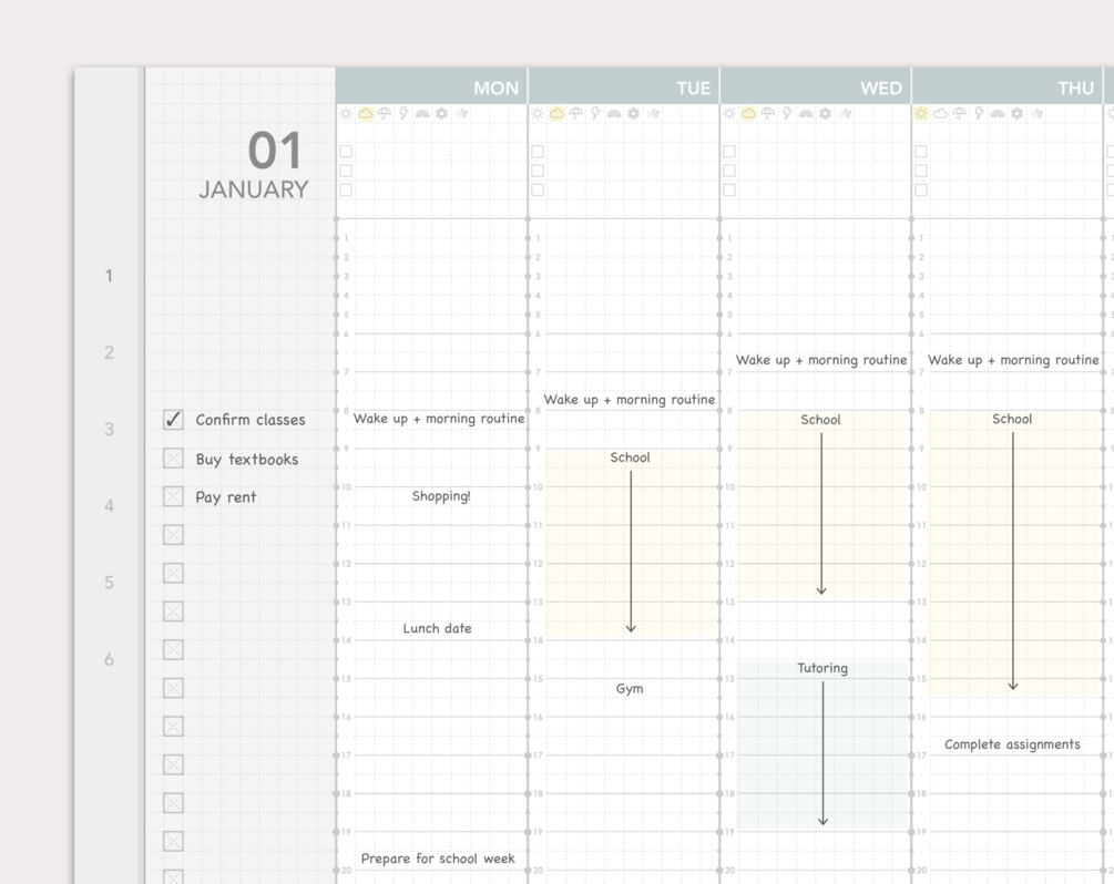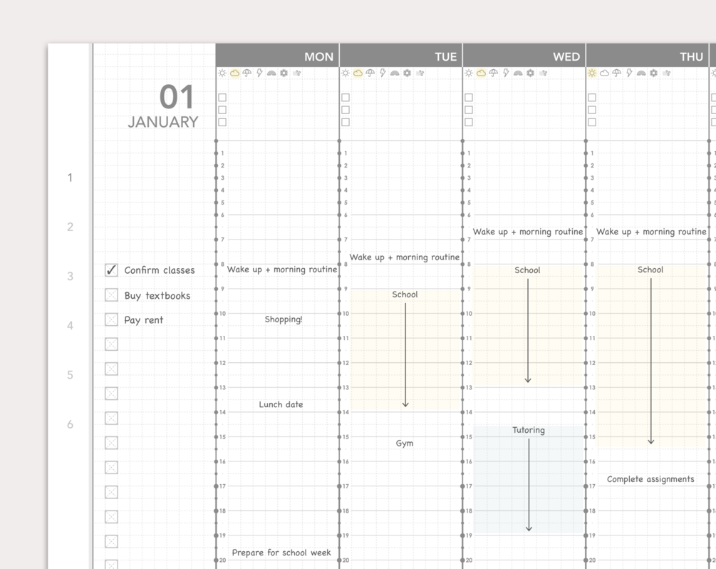 - Monthly and weekly pages