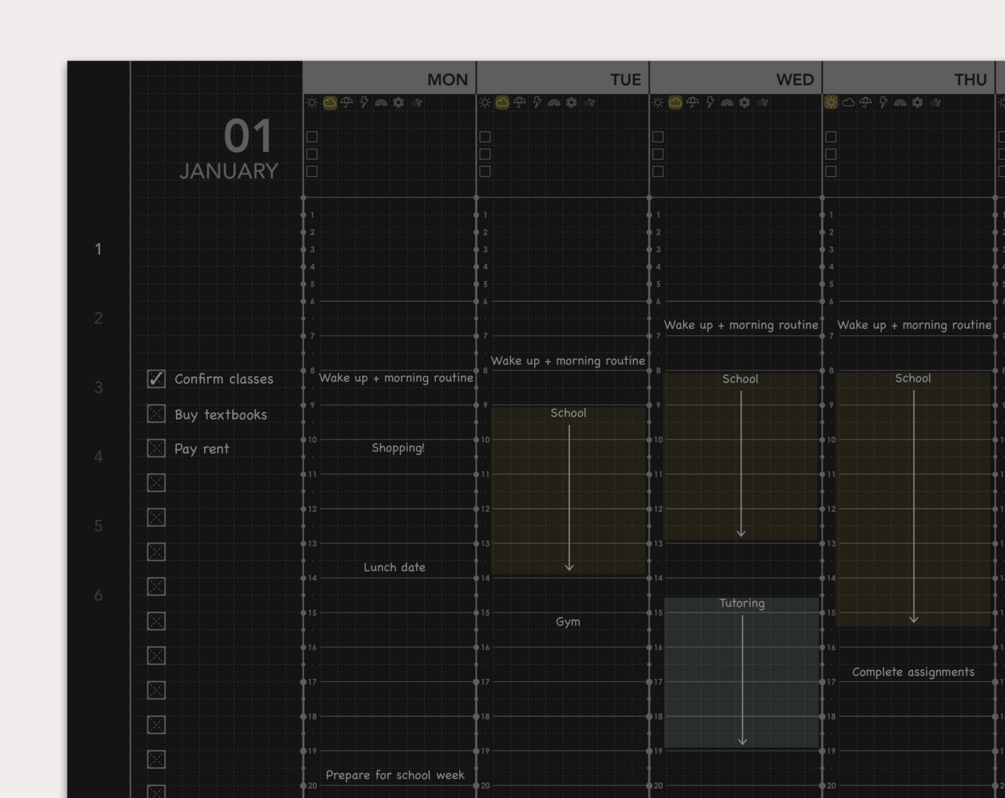 - Monthly and weekly pages