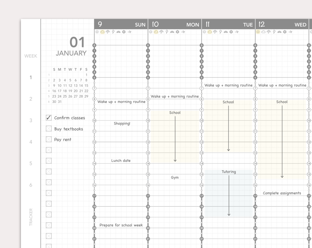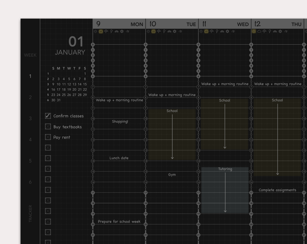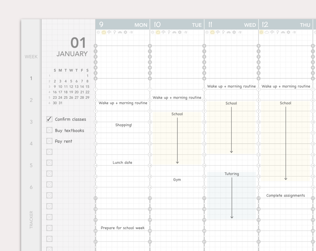 - Monthly and weekly pages