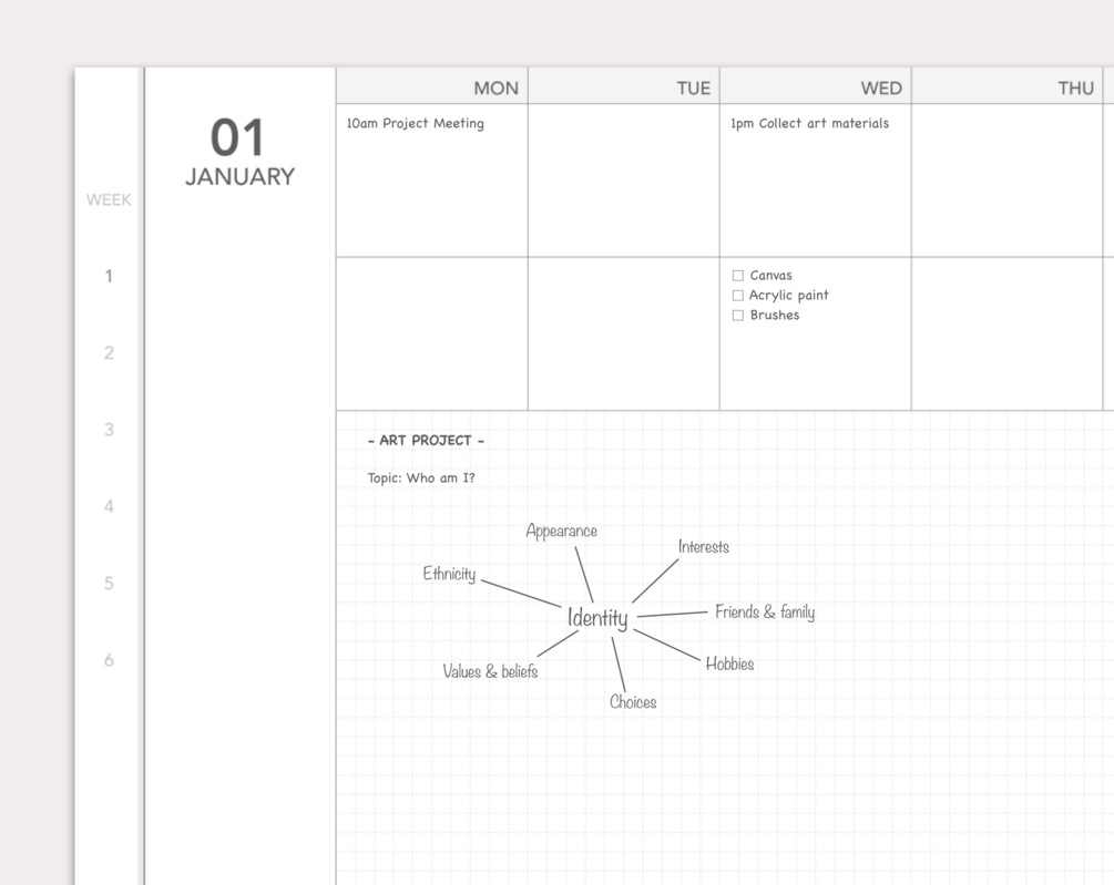 This Nolty Ecri-style undated digital planner is hyperlinked and designed to give a digital experience of the physical Nolty Ecri planner. This planner does not have timelines on the weekly pages, but instead contains plenty of free space on each spread. Perfect for those who are looking for flexibility in their planners. Purchase once and use it year after year!