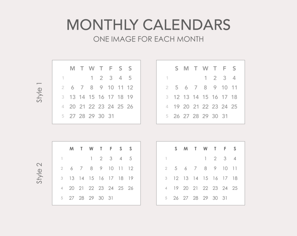 - Monthly & Yearly calendar PDF files